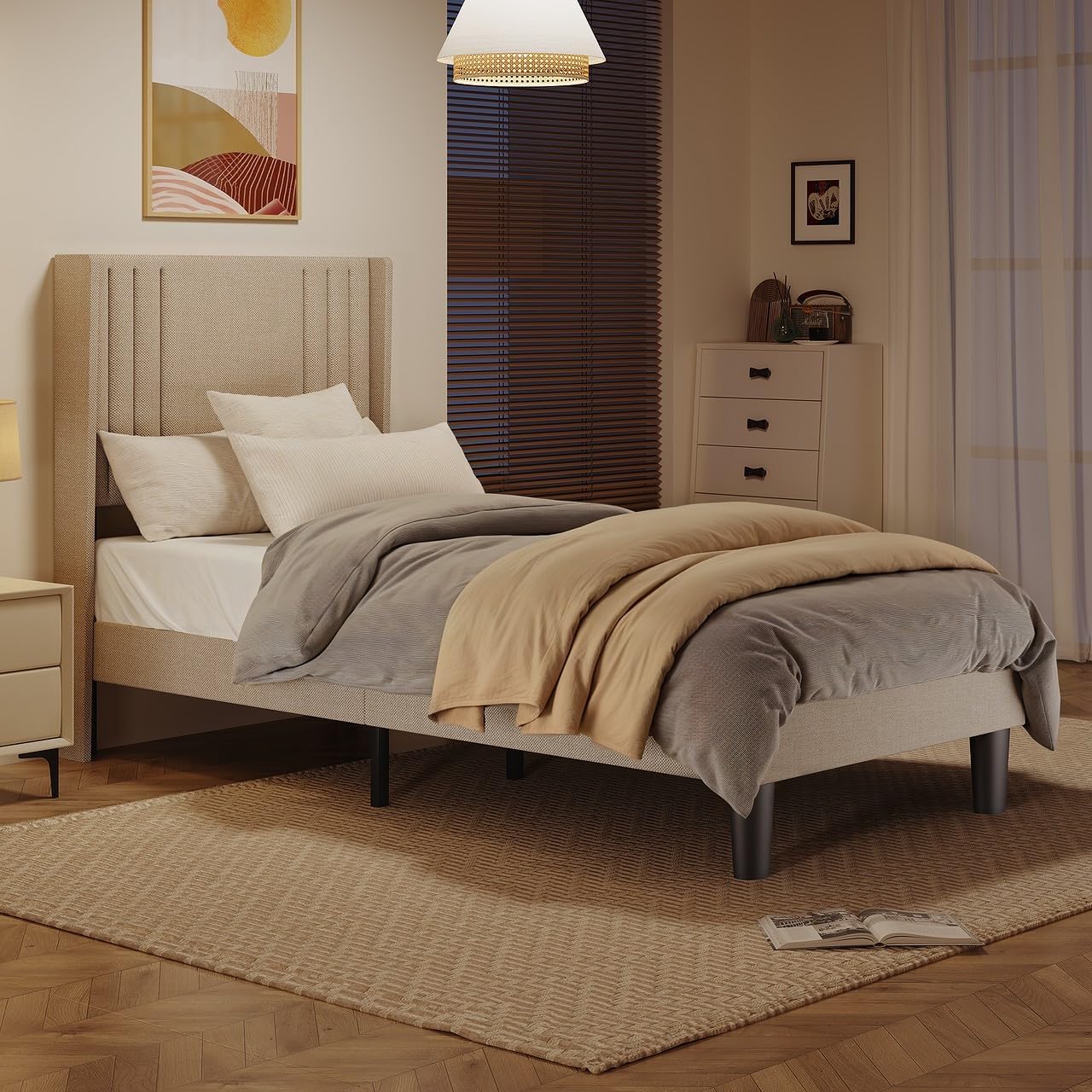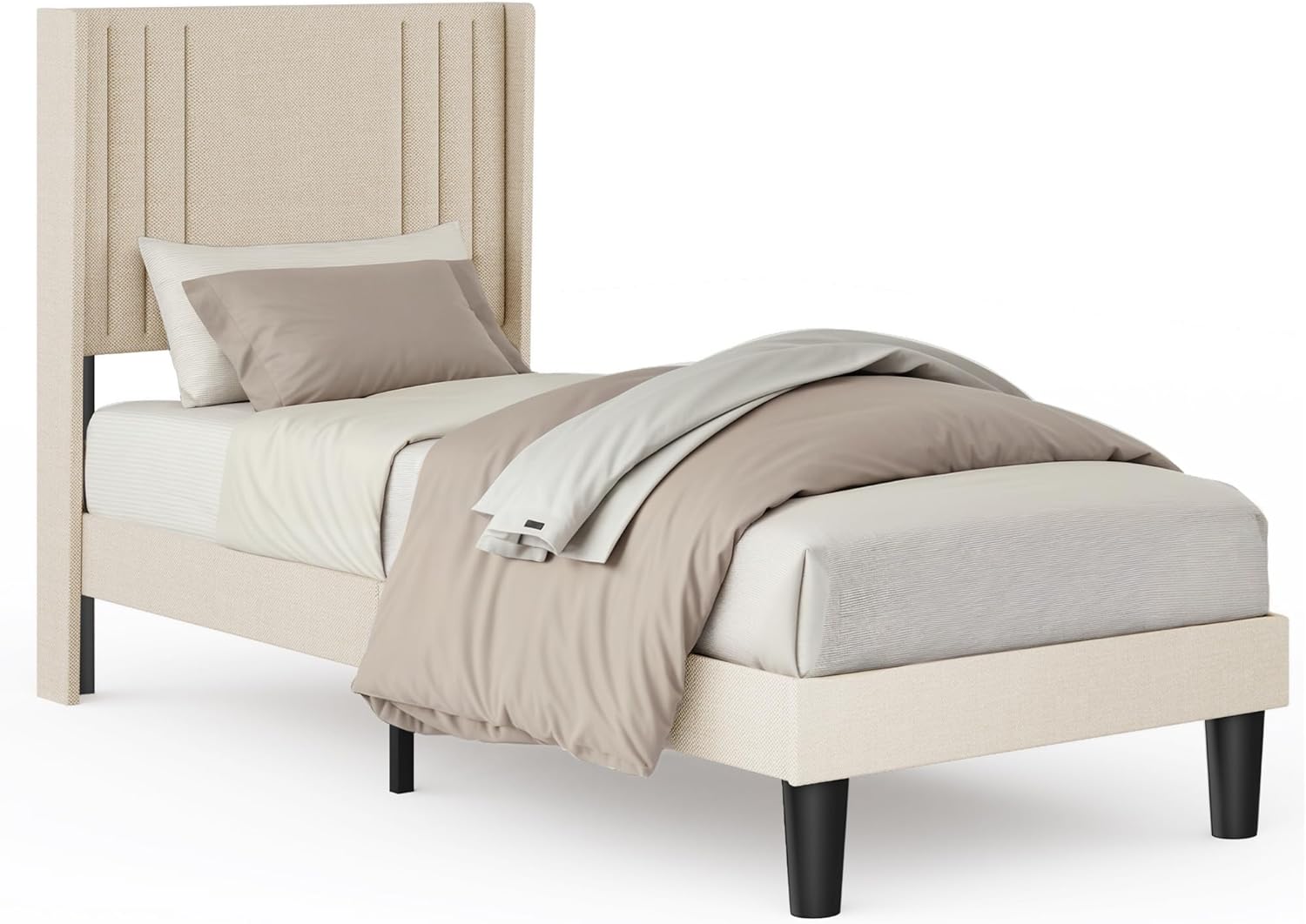 Esta cama tapizada de 90 cm con cabecero es una opción funcional y elegante para dormitorios juveniles e infantiles. Su diseño combina una estructura robusta con láminas de madera que ofrecen un soporte firme y duradero para el colchón, mejorando la comodidad y el descanso diario.