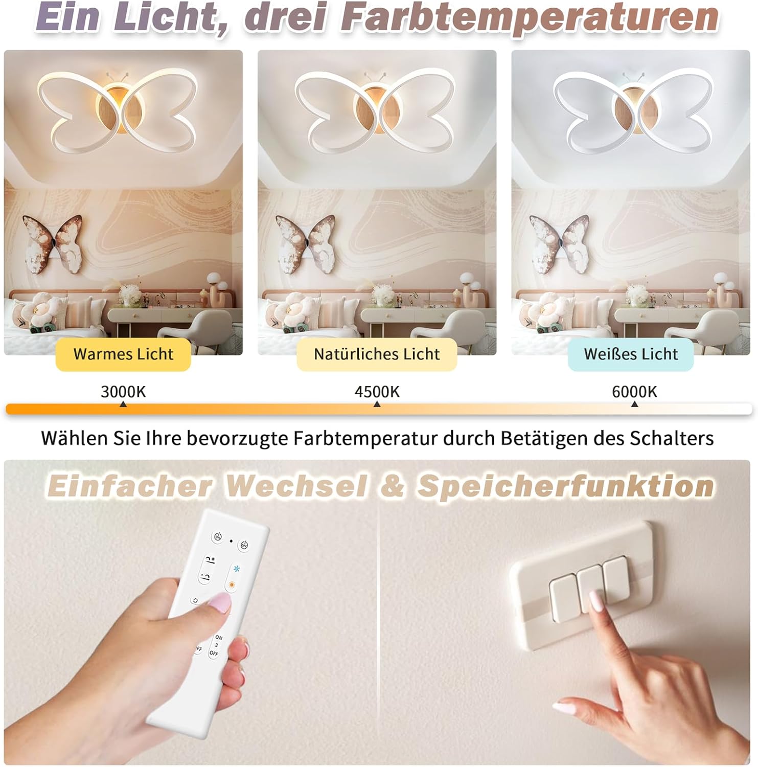 Gracias a su control remoto, esta lámpara permite ajustar fácilmente la temperatura de color entre 3000K y 6000K, adaptando la luz a cada momento del día: luz cálida para el descanso, luz neutra para el estudio y luz blanca para actividades diarias. Además, el brillo regulable del 100 % al 10 % ofrece una iluminación completamente personalizable.