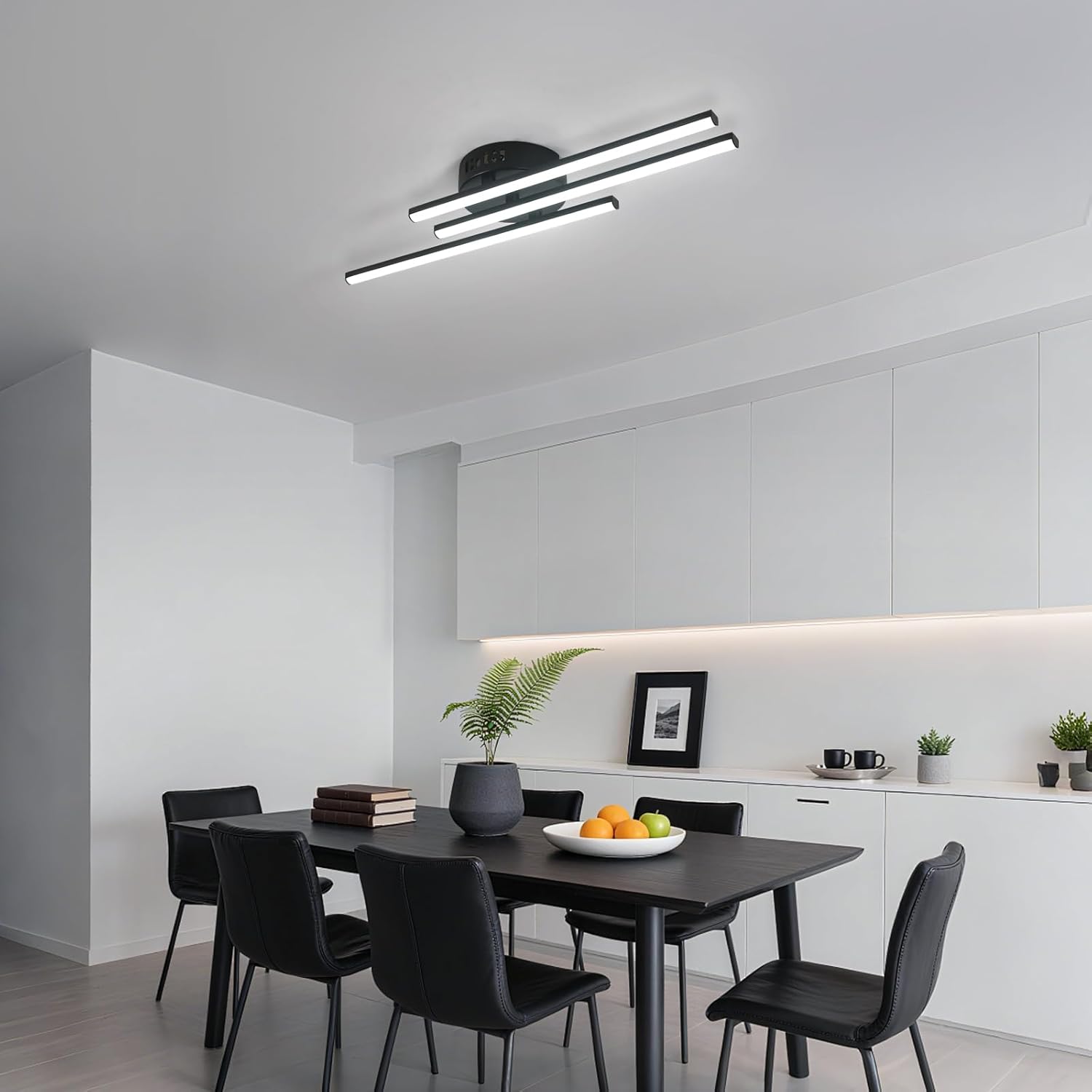 Esta lámpara LED de techo moderna de diseño lineal aporta una iluminación potente, uniforme y elegante, perfecta para cocinas, comedores y espacios contemporáneos. Su estructura de tres líneas crea un efecto visual limpio y sofisticado, ideal para cocinas modernas donde la luz funcional y el diseño van de la mano.